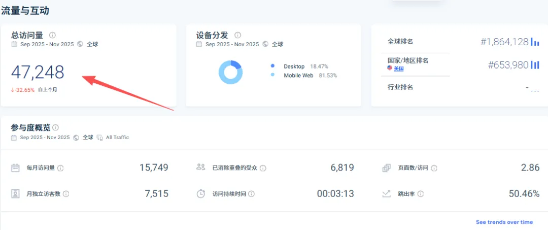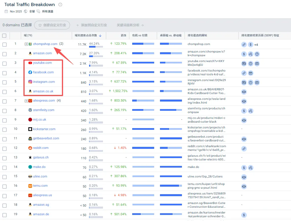 步骤二:独立站与社媒生态研究方向:独立站功能定位、流量来源、社媒渠道矩阵、内容策略,全域营销理解。1.流量渠道查看