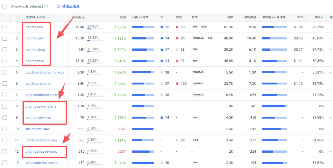 另外通过关键词端查看会发现,Chomp品牌的产品与该品牌的产品存在类比性,互为替代。