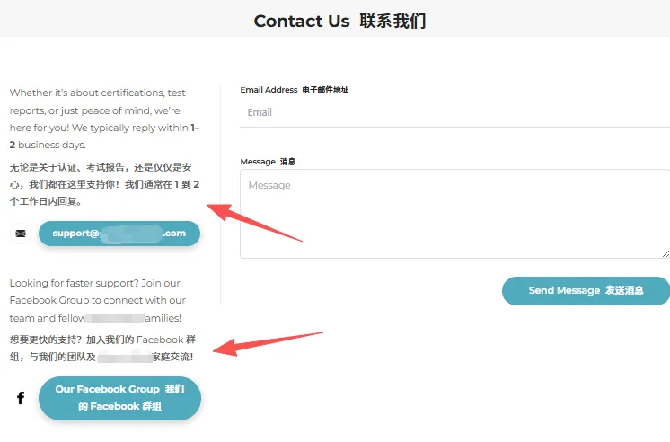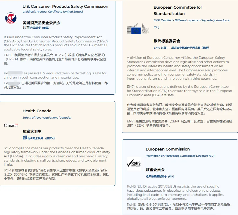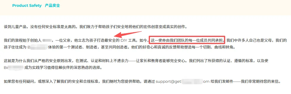 该品牌直接现身说法,对于产品的严格要求+认证情况做了详细的说明,并且说明有任何相关认证的问题都会在1-2个工作日内回复。