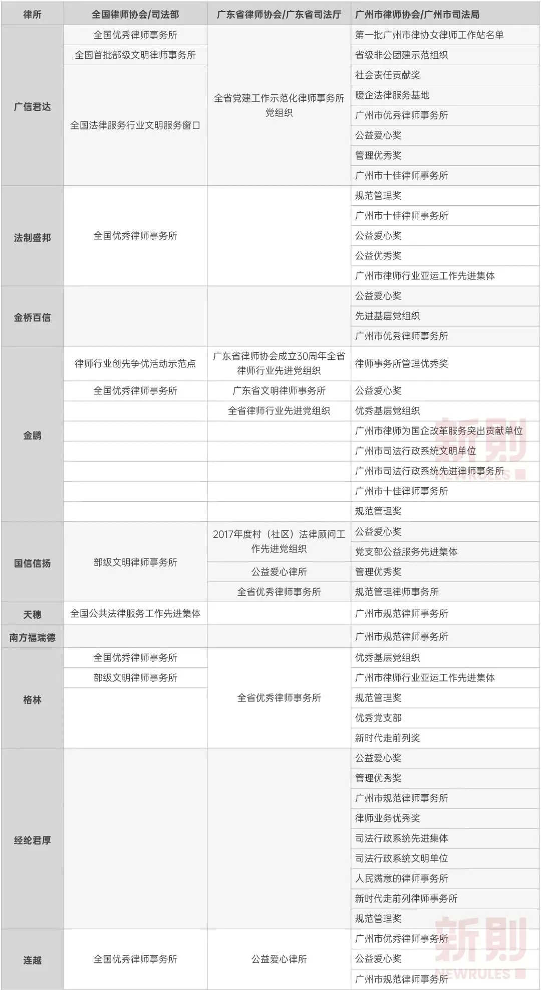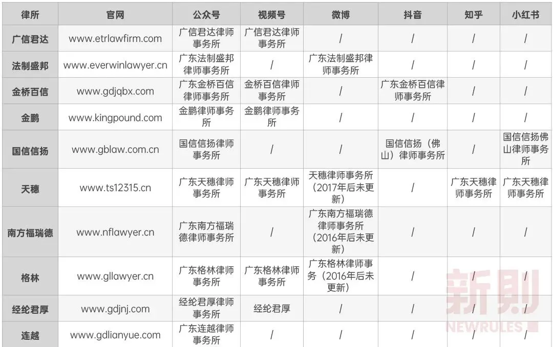 注:检索来源为全国律师执业诚信信息公示平台、各律所官网及微信公众号,空白处代表未能检索到结果,如有错漏,欢迎留言指出。