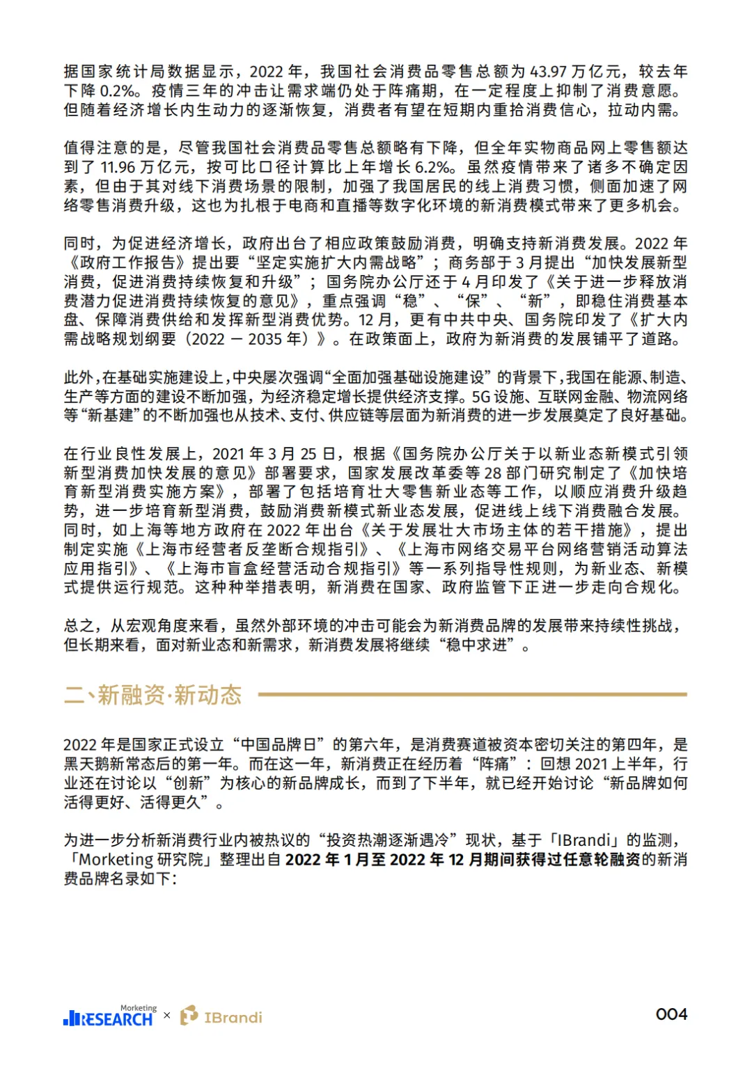 Morketing研究院于昨日发布了此份报告,报告从全年投融资数据、2000名消费者调研、20家品牌方访谈等多个维度,以资本、消费者和品牌的不同角度,展现新消费行业趋势,力求为从业者从品牌方角度摸清当前新消费行业的发展现状。
