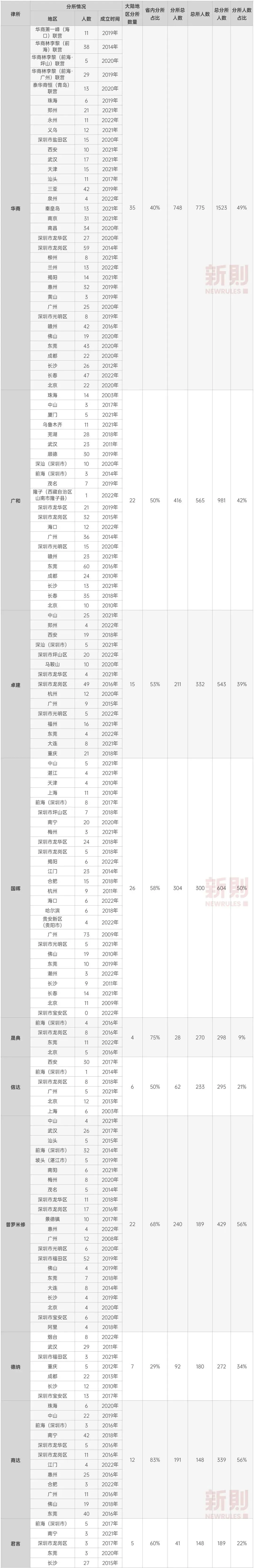 我们检索了深圳市10家本土规模律所的分支机构布局情况,梳理如下: