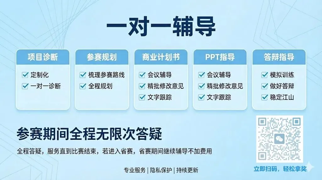 创赛模板工具:含财务数据自动生成模板、商业计划书格式参考、答辩问题总结预测,以及多款高适配 PPT 模板。材料质量全面提升。