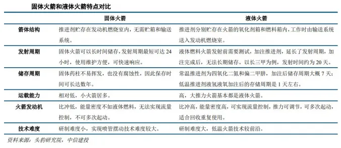 液体火箭运载能力强,可实现重复使用,是各国运载火箭发展的重点和核心;固体火箭运载能力较小,但响应速度快,是液体火箭的有力补充。世界各航天大国的重大航天活动对液体火箭发动机提出了更高要求,使其成为发展重点;而固体运载火箭适用于军事应急发射以及商业快速发射,在星座组网和补网中可发挥补充作用。