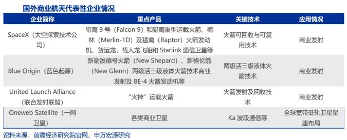 全球商业航天企业分布广泛,各企业技术及业务布局侧重不同,头部企业主要分布在美国和中国,产业链布局完善,竞争力强。SpaceX、ULA 以火箭回收技术引领商业发射,Blue Origin 专注于液体火箭及发动机技术,并于 2025 年 11 月 14 日成功实现一子级海上垂直着陆回收,成为继 SpaceX 之后第二家成功完成火箭回收的商业火箭公司,Starlink 及 Oneweb 侧重于全球宽带低轨卫星星座布局。