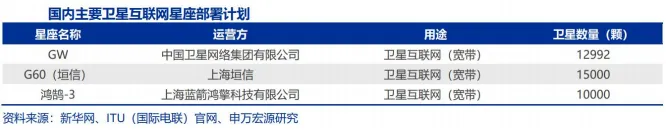 中国卫星发射数量激增,申请低轨卫星数量总数已达5.13万颗。根据国际电信联盟(ITU)披露和人民网报道,数量超过万颗的星座计划有三个:中国星网的GW星座共计规划发射12992颗卫星,G60星座规划发射超1.5万颗低轨卫星,鸿鹄星座规划在160个轨道平面上总共发射10000颗卫星。
