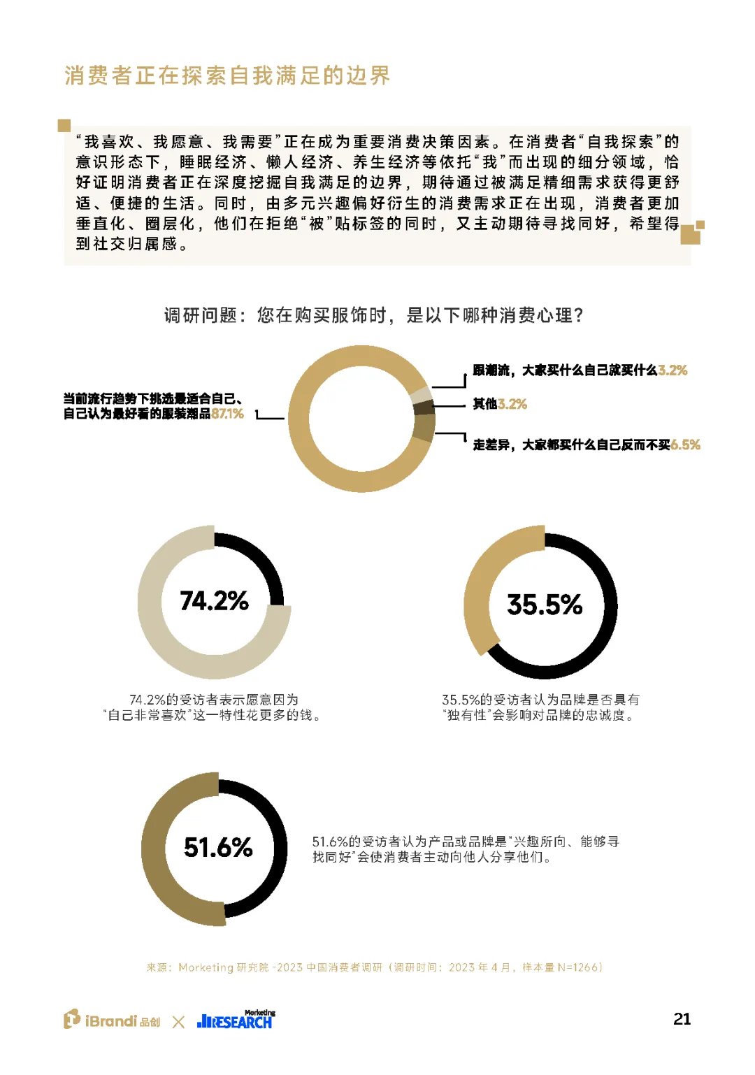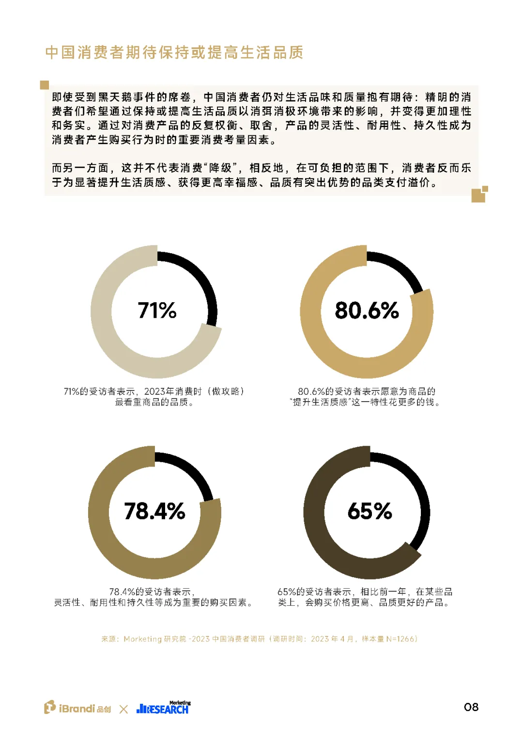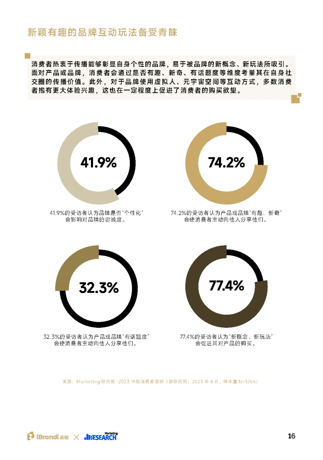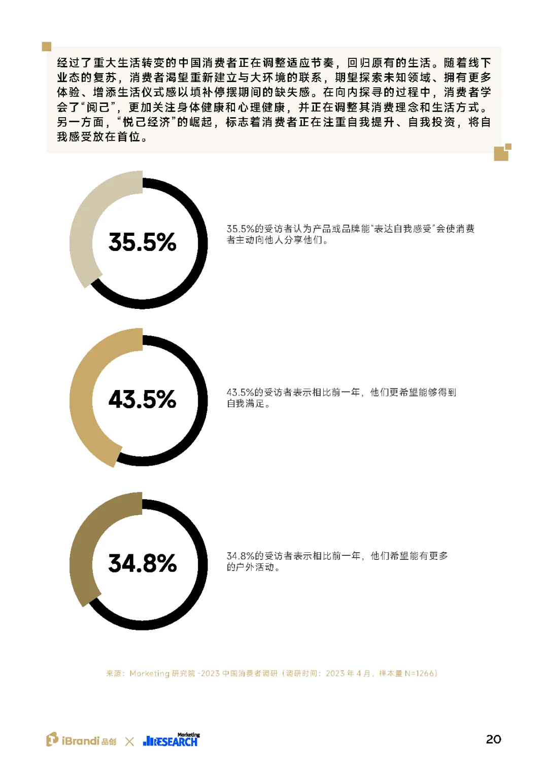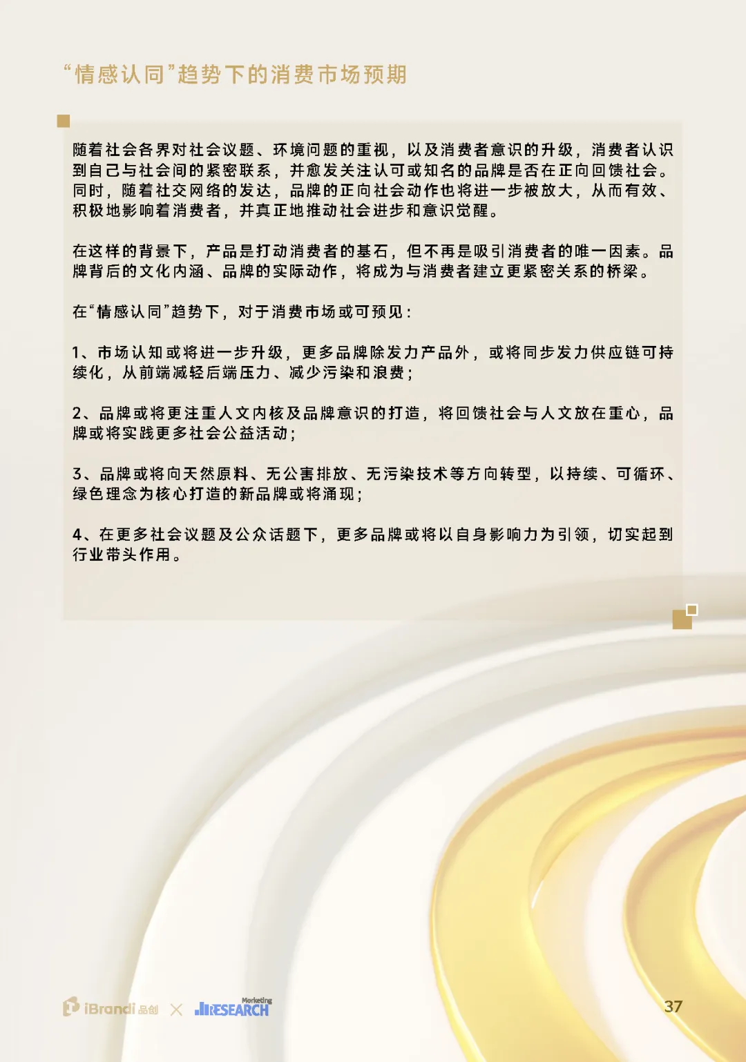 此外,中国消费者越来越注重个人感受和追求生活质量,将消费视为探索个性和身份的重要方式。他们关注品牌的人文内涵,希望选择那些具有同理心、社会责任感和能够换位思考的品牌。消费者开始意识到品牌所传递的公众价值,并对自我和消费行为进行认知转变。
