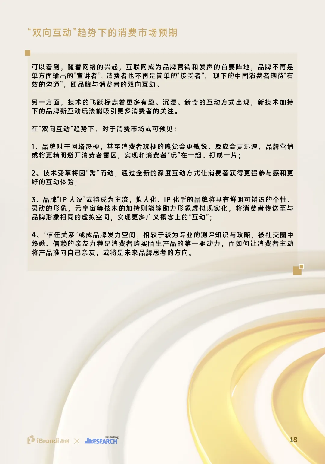 摘要:在过去十年里,中国经济高速发展,居民生活水平迅速提高,中国市场蕴含着巨大的消费潜力,中国经济增长模式正在向消费驱动型转变。过去的三年里,大部分中国消费者将公共健康放在首位。如今,随着经济和消费业态的全面回暖,中国消费市场注入了新的活力。随之而来的是新人群、新需求和新模式的出现,给中国消费市场带来了全新的机遇和挑战。