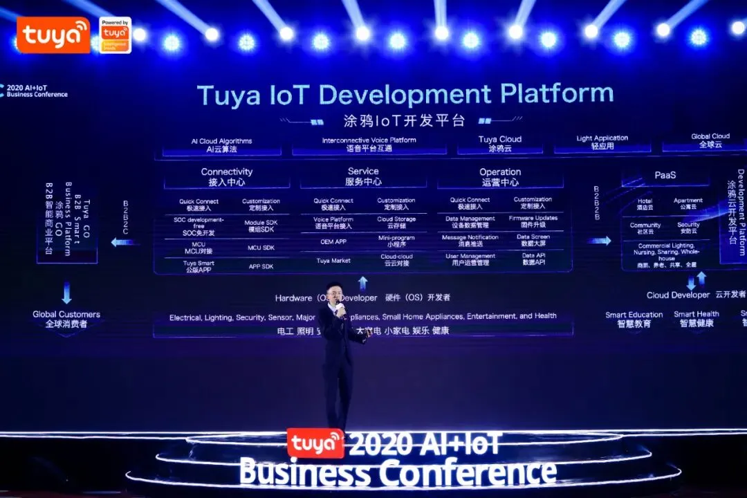涂鸦智能联合创始人兼总裁陈燎罕于全球智能商业峰会上发布涂鸦云开发平台