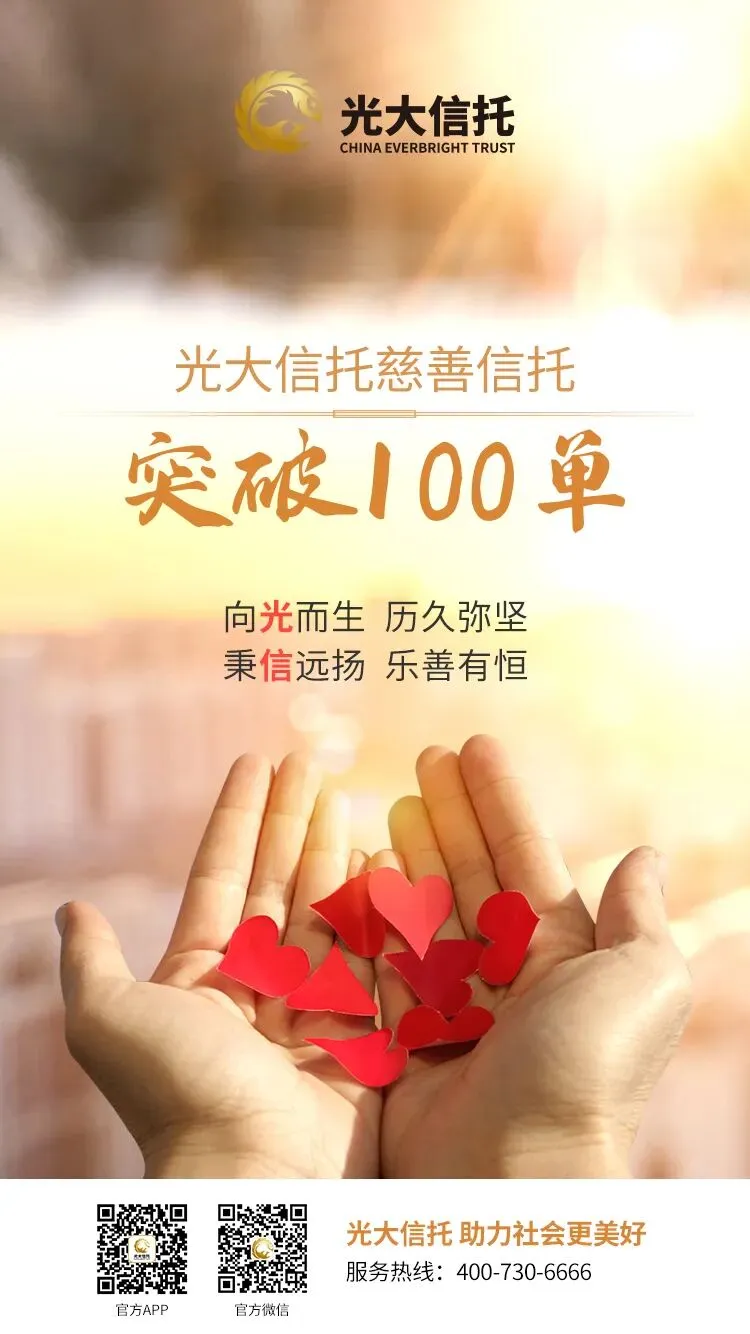 行业观察 | 慈善信托突破百单 光大信托践行社会责任为响应国家号召,承担社会责任,光大信托顺应监管导向,积极将慈善信托作为转型发展和回归业务本源的重要抓手,加快创新驱动,持续推动慈善信托业务高速发展,成功塑造了光大信托“精准、透明、高效”的慈善品牌。截至12月末,光大信托共向民政部门完成备案的慈善信托产品达到110单,规模合计超过7.1亿元,成为行业内首家突破百单慈善信托的金融机构。