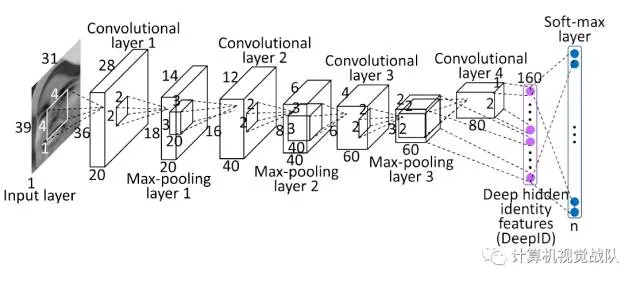 DeepID是第一代,其结构与普通的卷积神经网络差点儿相同。结构图例如以下: