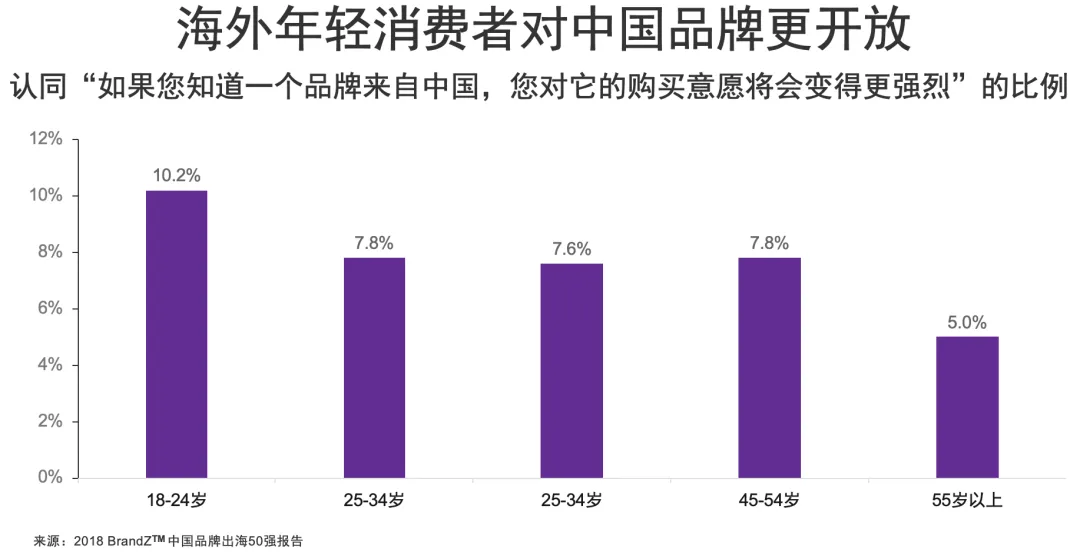 海外的年轻消费者一直是中国品牌全球化发展的最热情支持者。凯度BrandZ™️的数据显示,全球新一代的消费者对来自中国的品牌更认同。中国品牌尤其给人以“善于创新”的印象。相比中老年人,全球的年轻人往往更认同这一点。中国品牌的标志性主张是将创新与性价比相结合,这套做法特别符合年轻人的胃口。