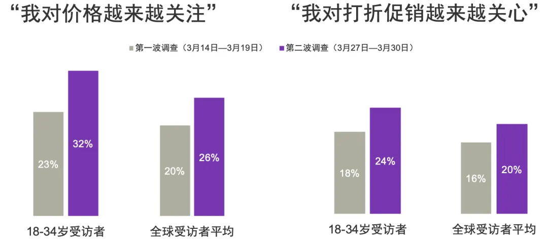 由于对收入开始担心,年轻人买东西的时候会留意价格,而且这一比例越来越高。打折促销对他们的吸引力也不断上升。
