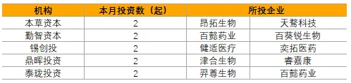 【最受投资人欢迎的领域】本月药品领域最为吸金,融资金额高达26.41亿元,占总融资金额的62.06%。从项目数量上看,医疗器械领域也较为活跃。