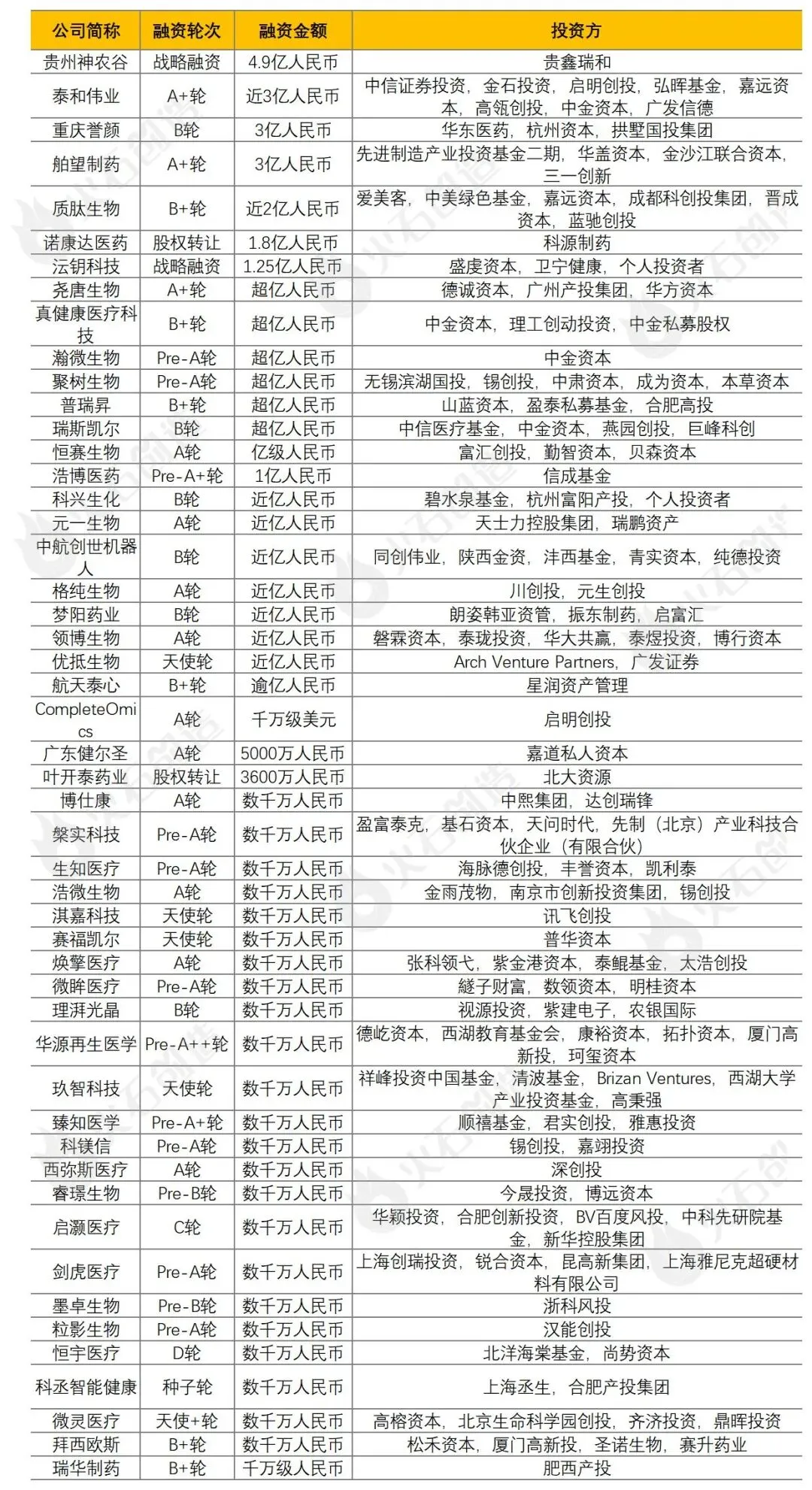 珍宝岛发布公告,全资子公司亳州中药材商品交易中心有限公司拟出资5.1亿元人民币(含前期尚未完成实缴的贵州神农谷注册资本2,000万元人民币),并引入贵州省农业农村现代化发展股权投资基金合伙企业出资4.9亿元人民币,共同对公司二级全资子公司贵州神农谷健康产业发展有限公司进行增资扩股,在贵州省对中药全产业链进行布局,推动贵州中医药产业高质量发展。贵州神农谷健康产业发展有限公司是一家中药材种植加工商,主要从事中药材种植、加工、仓储物流、贸易等业务,并提供远程健康管理服务、中医养生保健服务、体育健康服务。成都泰和伟业生物科技有限公司宣布完成近3亿元A+轮融资。本轮融资由中信证券投资有限公司、金石投资旗下茅台金石基金领投,启明创投、弘晖基金、嘉远资本跟投,原股东高瓴创投(GL Ventures)、中金资本旗下中金启辰基金、广发信德继续跟投。成都泰和伟业生物科技有限公司是一家专业从事保护氨基酸系列产品研发、生产与销售的生物科技企业。公司研究开发了一系列的新产品,长期为全球客户提供具有竞争力的优质化学原料,特别是保护氨基酸、非天然氨基酸,已经在国内、国际市场上得到了广泛的认可。 3. 华东医药与重庆誉颜达成股权及重组A型肉毒毒素YY001独家战略合作华东医药股份有限公司全资子公司欣可丽美学(杭州)医疗科技有限公司、杭州产业投资有限公司、杭州拱墅国投产业发展有限公司与重庆誉颜制药有限公司及其股东代表今日共同宣布签署股权投资协议;此外,华东医药与重庆誉颜宣布签署注射用重组A型肉毒毒素YY001独家经销协议,建立战略合作伙伴关系。重庆誉颜是广州因明生物医药科技股份有限公司控股的生物医药创新公司。YY001是重庆誉颜自主研发的与天然肉毒毒素具有一致生物功能和药理药效作用的重组A型肉毒毒素蛋白。截至目前,YY001是国内首个获批进行临床试验的重组A型肉毒毒素在研产品,其亦为全球唯一临床阶段的重组A型肉毒毒素在研产品。目前重庆誉颜正在全力推进YY001的III期临床试验。—END—