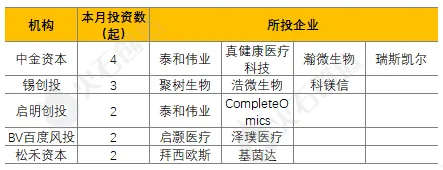 【融资概况】本月全国生物医药领域(不算拟收购、被收购、定增、挂牌上市)共发生了65起投融资事件,累计金额超过39.31亿元(不含未披露金额项目),和上月融资情况相比,获投项目数量上升了1.56%,而融资金额下降了38.34%。