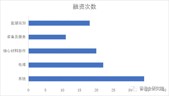 据香橙会氢能数据库统计,2015年以来的氢能行业融资案例中,燃料电池系统34起,燃料电池电堆22起,核心材料和部件20起,氢能装备和服务11起,氢制储运加18起。行业大部分的融资案例集中于电堆和系统。