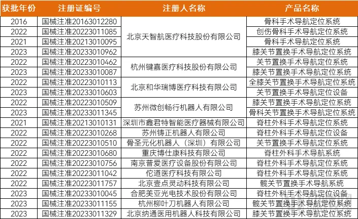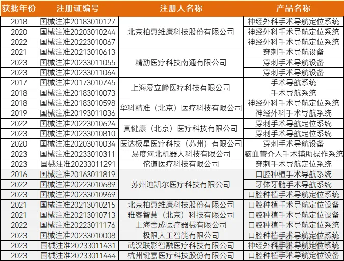 国内获批的神外手术机器人企业有3家,分别是华科精准、柏惠维康和武汉联影智融医疗科技有限公司。