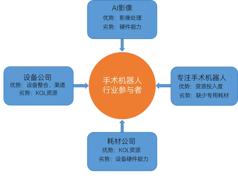 从企业端来看,目前主要有四类企业布局手术机器人,具体如下: