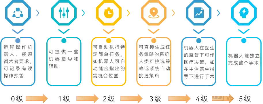 另外,手术机器人迈向自动化和智能化是必然,接下来将向自动化2级和3级迈进,并在技术上做复合,比如复合0级、1级和部分的2级共同迈向第3级。