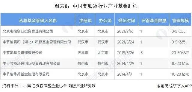 由于变频器属于细分行业,从关联性来看,与电控、节能产业相关,故前瞻选择从电控和节能产业的备案基金情况侧面窥探中国变频器的基金投资。目前,电控产业的在管基金数量为1个;节能产业的在管基金数量为4个,管理规模最大为20-50亿元。