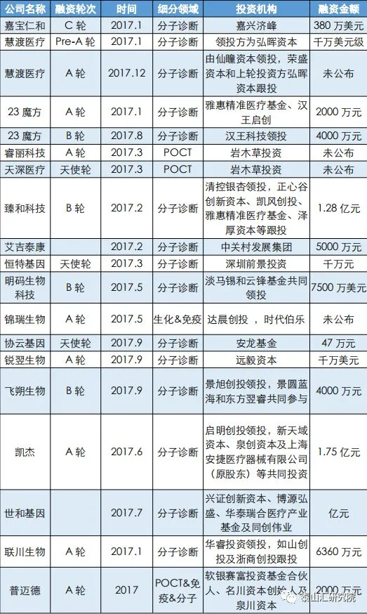 · 2018年3月,公司完成B+轮融资,融资金额为1亿人民币,投资方为德商奇点 、雅惠精准医疗基金、经纬中国 、汉王科技。