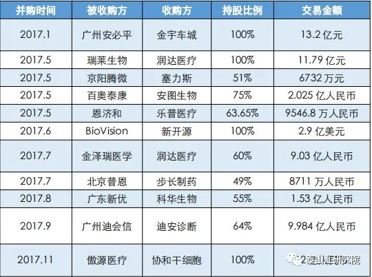 据不完全统计,2017年体外诊断领域共计发生11起并购事件,交易金额达80亿人民币左右,其中,70%以上的并购事件交易金额超亿元,其中值得关注的是,金宇车城斥资13.2亿涉足体外诊断领域。