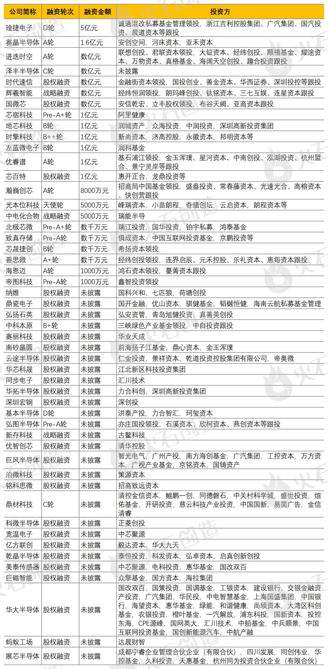 琻捷电子是一家高性能车规芯片研发商,专注于高性能汽车级芯片的研发、设计与销售,致力于为客户提供优秀的汽车电子传感芯片和完整的系统解决方案,适用于车载空调,刹车助力、真空助力、光雨量传感等应用场景,途捷电子创新推出的电池包传感监测芯片,包括BPS芯片和BAS芯片,针对新能源车电池包热失控管理,提供了更快速可靠的热失控监测管理措施,相应的芯片产品和解决方案已经在全球头部电芯生产制造商量产出货,是该领域全球领先的芯片供应商。赛晶科技公布,公司控股子公司赛晶亚太半导体科技(浙江)有限公司(简称“赛晶半导体”)完成A轮融资。本次融资估值为投后27.2亿元人民币,由4家投资者合计出资人民币1.6亿元人民币,占股比例5.88%。本次融资后,赛晶科技持股比例为70.53%。赛晶半导体是一家IGBT模块生产制造商,致力于打造国际领先水平的国产精品IGBT、SiC芯片及模块。自主研发的IGBT芯片,使用目前主流的FS-Trench结构,并在设计中进行了N型增强、窄台面、短沟道、超薄基底、优化P+、3D结构等多项优化。进迭时空科技有限公司(“进迭时空”)已完成数亿元A轮融资,本轮融资由联想创投、君联资本领投,北京国管顺禧基金、经纬资本、耀途资本、万物资本、真格资本、海阔天空创投(Beyond Ventures)、趣合投资跟投。该轮融资将主要用于其下一代高性能RISC-V CPU产品的研发和进一步的市场拓展,助力RISC-V生态加速迭代。进迭时空是一家RISC-V高性能CPU芯片研发生产商,从处理器内核到芯片和软件纯自研,专注研发新一代架构更融合、算力更强大、性能更优秀的RISC-V高性能处理器和计算系统。致力于构建“云-边-端”架构原生一体的下一个计算时代。—END—