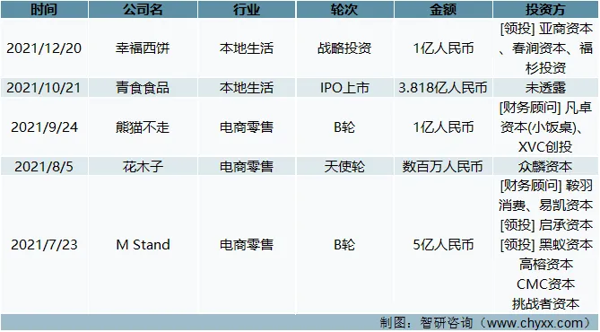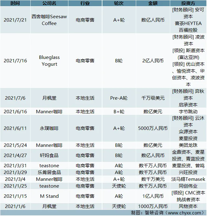 2021年,中国烘焙食品行业融资金额累计约为62.95亿元。融资金额主要分布在:天使轮0.43亿元,占比0.68%;Pre-A轮0.65亿元,占比1.03%;A轮1.6亿元,占比2.54%;A+轮5.45亿元,占比8.66%;B轮30.5亿元,占比48.45%;B+轮19.5亿元,占比30.98%;战略投资1亿元,占比1.59%;IPO上市3.82亿元,占比6.07%。