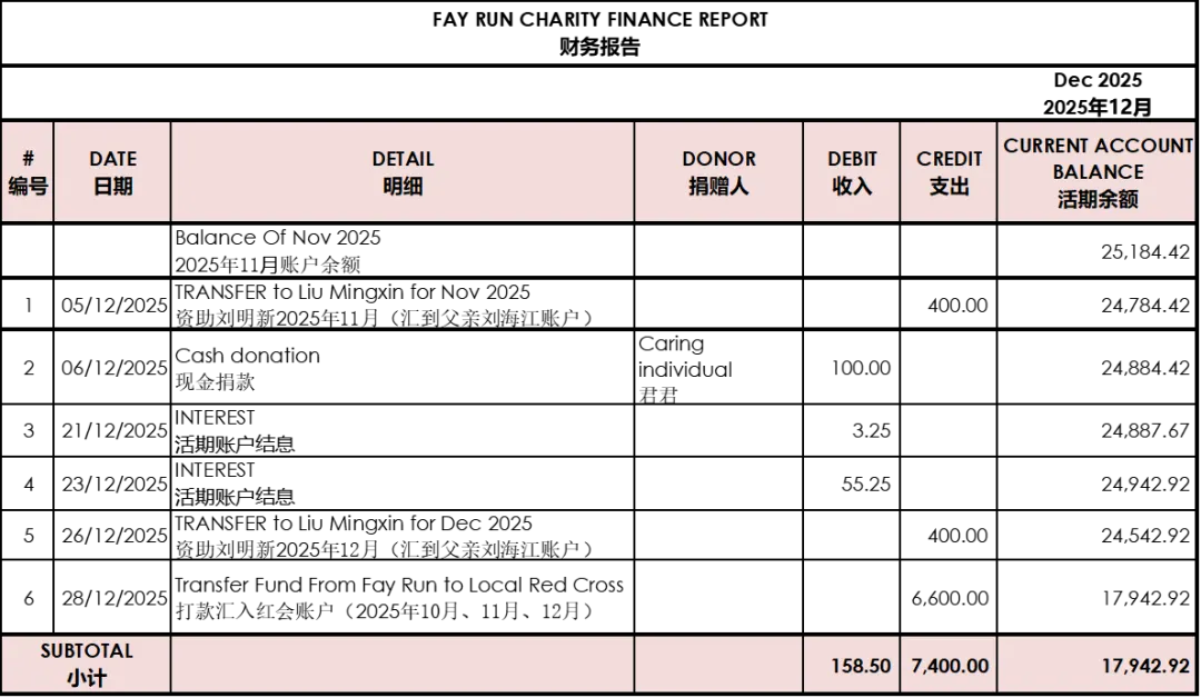 This is the account report of Dec. 2025. Thank you for your attention and your support.