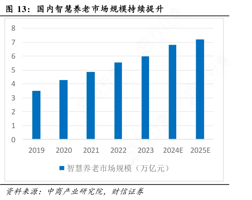 政策托底的背后,是实打实的市场规模。2025 年智慧养老市场预计冲到 7.21 万亿元,从 2019 年起就保持着 14.42% 的年均增速,这种增长可不是虚的。截至 2024 年底,我国 60 岁以上人口已经有 3.1 亿,占了总人口的 22%,65 岁以上也达到 2.2 亿 —— 这么庞大的群体,需求早就从 “吃饱穿暖” 升级到了健康管理、文娱社交、情感陪伴。