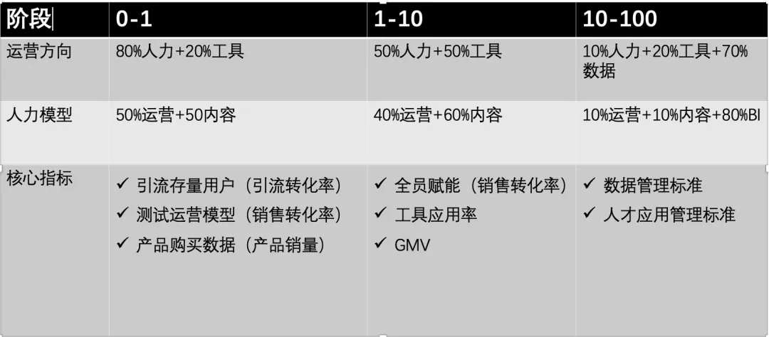 在0-1/1-10/10-100,3个阶段,分别如何制定战略布局与资源(人员、资源、工具)规划