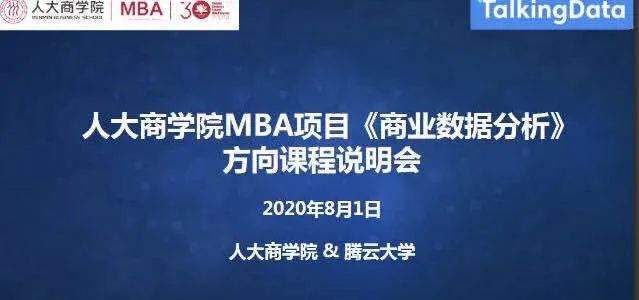2020年8月1日,由中国人民大学商学院MBA项目中心与腾云大学共同举办的《商业数据分析》方向课程线上说明会通过腾讯会议平台顺利举行,活动受到了19级、20级在读MBA学生的热烈欢迎,在线人数达到240多人。