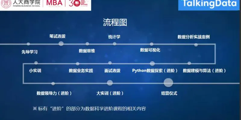 人大MBA与腾云大学合作,聚焦企业实践,在理论课程基础上结合行业场景,帮助学员掌握数据分析完整流程的所需技能,包括问题定义、数据处理、数据可视化、建模调优、标准汇报等;提升数据思维能力,从全局把握数据分析的关键环节与趋势走向。