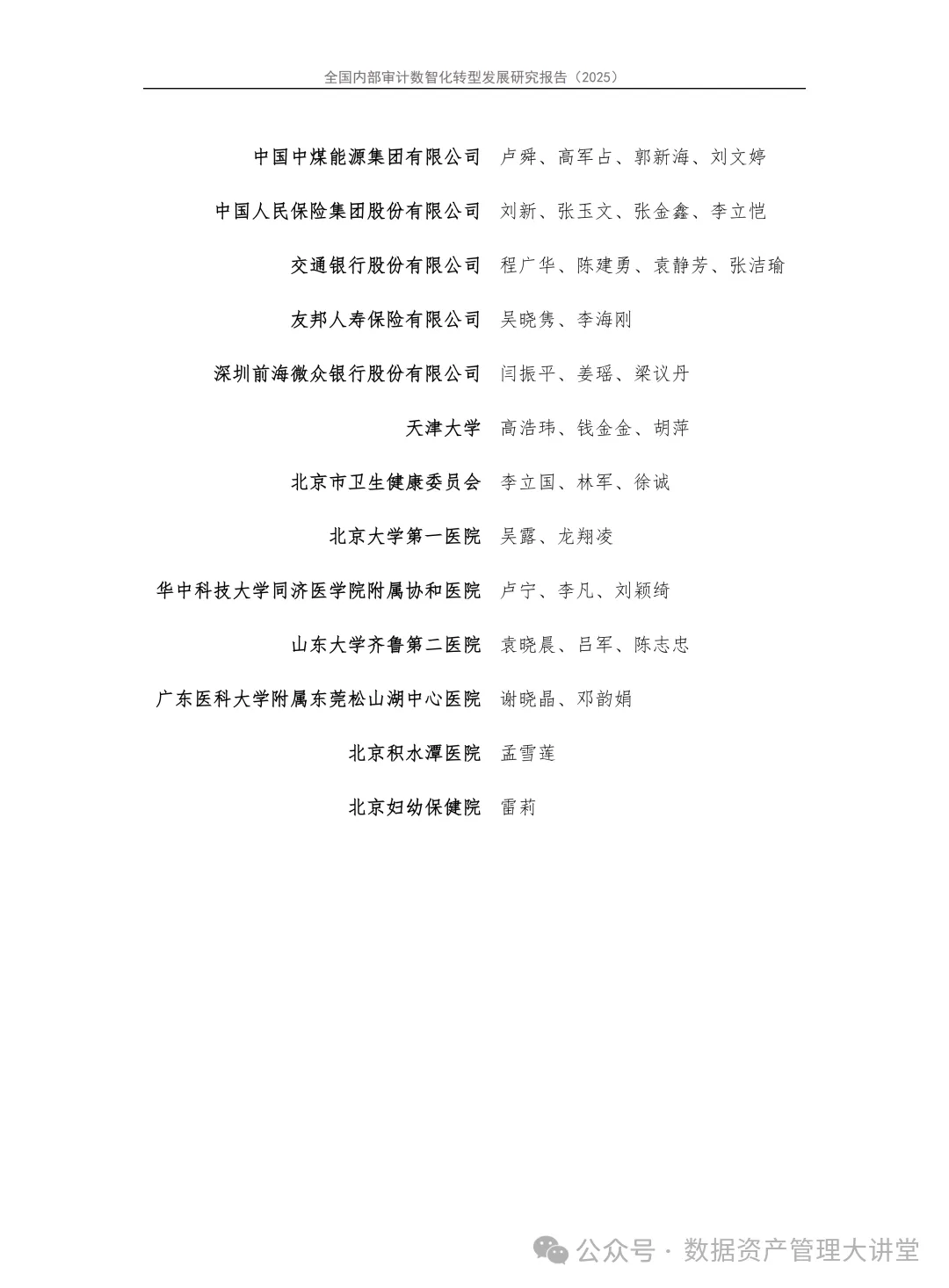 中国石油化工集团有限公司、中国海洋石油集团有限公司、国家电网有限公司、中国南方电网有限责任公司、中国联合网络通信集团有限公司、中国中煤能源集团有限公司、中国人民保险集团股份有限公司、交通银行股份有限公司、友邦人寿保险有限公司、深圳前海微众银行股份有限公司、天津大学、北京市卫生健康委员会、北京大学第一医院、华中科技大学同济医学院附属协和医院、山东大学齐鲁第二医院、广东医科大学附属东莞松山湖中心医院、北京积水潭医院、北京妇幼保健院18家中央和地方单位参加了数据分析和报告编写工作。