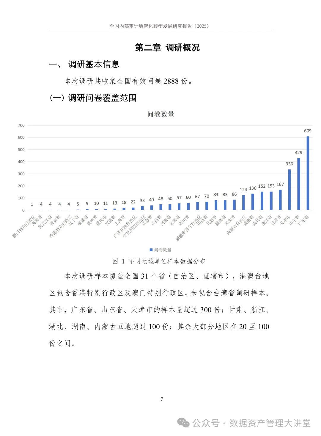 为深入贯彻落实党中央、国务院关于“人工智能+”行动的决策部署,全面掌握当前我国内部审计行业数智化转型情况,2025年10月,在审计署内部审计指导监督司指导下,中国内部审计协会、中国信息通信研究院(简称“中国信通院”)联合开展了全国内部审计数智化转型情况问卷调研工作,并组织编写了《全国内部审计数智化转型发展研究报告(2025)》。调研共收回有效问卷2888份,覆盖全国31个省(自治区、直辖市)及多个重点行业。