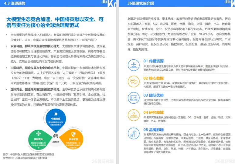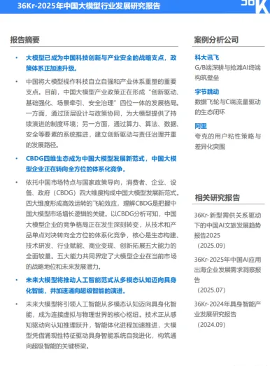 36 氪研究院发布的《2025 年中国大模型行业发展研究报告》,全方位呈现中国大模型行业发展全貌,为从业者、投资者提供了系统且深入的参考依据。