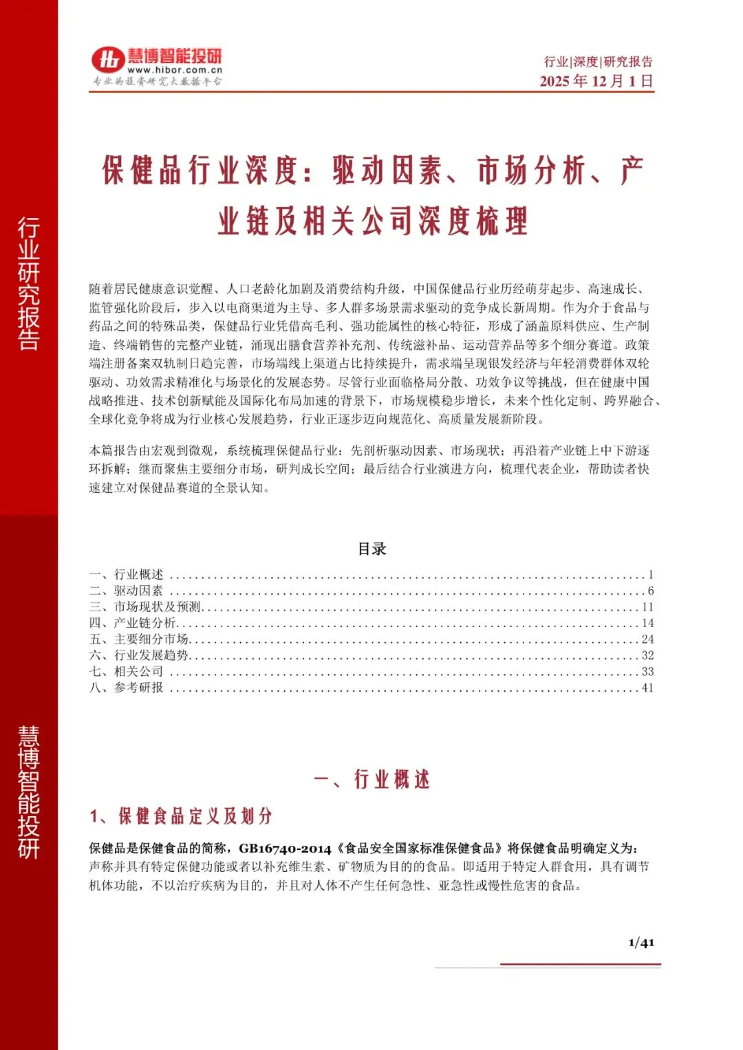 保健品行业深度:驱动因素、市场分析、产业链及相关公司深度梳理(附下载)