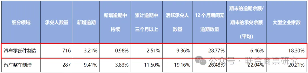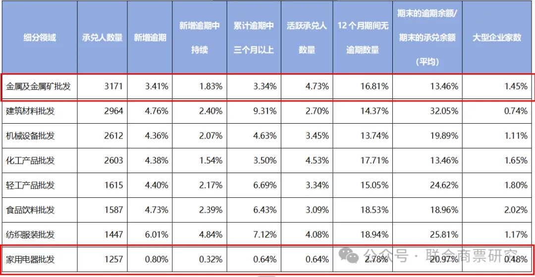 联合评价通过承兑人数量、近期新增承兑人数量、近期新增且持续逾期承兑人数量、逾期持续三个月以上承兑人数量、活跃承兑人数量、最近无逾期承兑人数量、期末逾期余额/期末承兑余额、大型企业家数等统计数据构建指标,对主要细分领域的商票投资价值进行排序分析,有较好的效果。