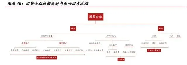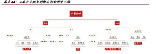 正餐业态经营核心因素拆解,产品+品牌+管理+扩张是关键。我们认为好的餐饮 公司应该具备:单店高翻台率,门店扩张能力,快速扩张下依旧稳定的同店增速,强 成本掌控能力及品牌再造能力,而所有表象指标背后可归因于公司在产品、品牌、管 理及扩张上的优势。产品与品牌势能外化即是翻台率与强成本管控,产品是餐企之本, 强大的品牌势能在收入端打造高翻台率,在成本端压低租金水平,最终成就单店盈利 能力。内练管理优势,外部支撑成本优化与高效扩张。优秀的管理体系对于门店扩张 和成本管控至关重要,企业的管理理念,利益分配和激励机制决定员工努力程度和顾 客满意度,是门店高速扩张下盈利的基础。扩张能力领航企业高度与未来发展,品牌 孵化再造成长能力。