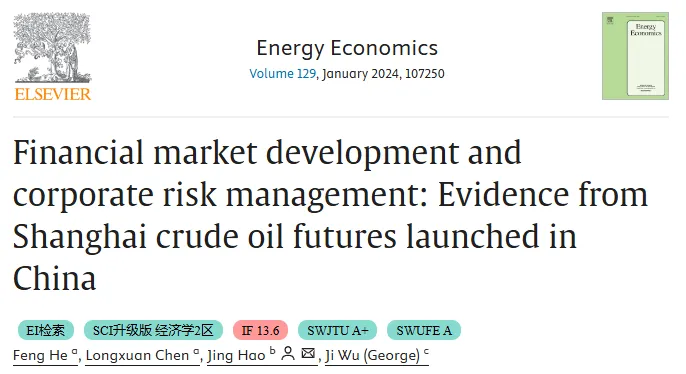 Financial market development and corporate risk management: Evidence from Shanghai crude oil futures launched in China 金融市场发展与企业风险管理:来自上海原油期货上市的证据https://doi.org/10.1016/j.eneco.2023.107250