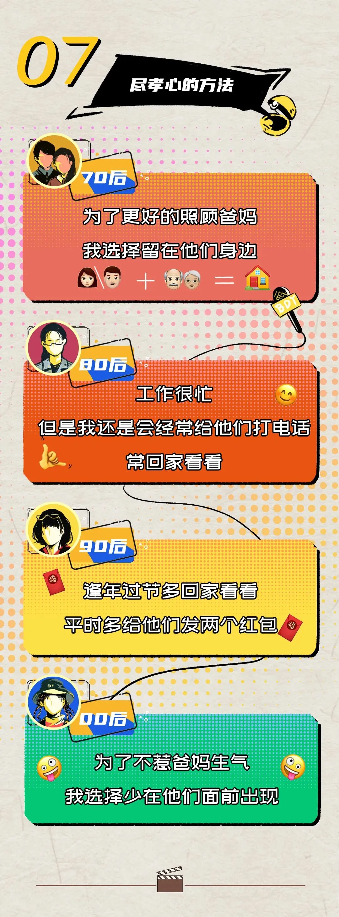 今天我们来看下在不同的情况下,70后、80后、90后、00后会有怎样不同的内心戏。