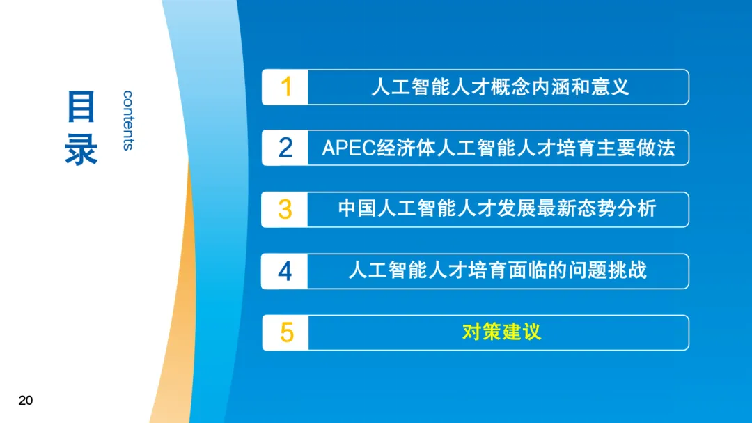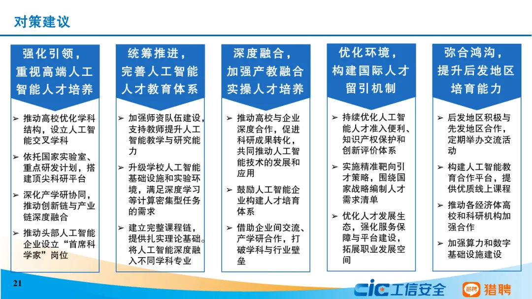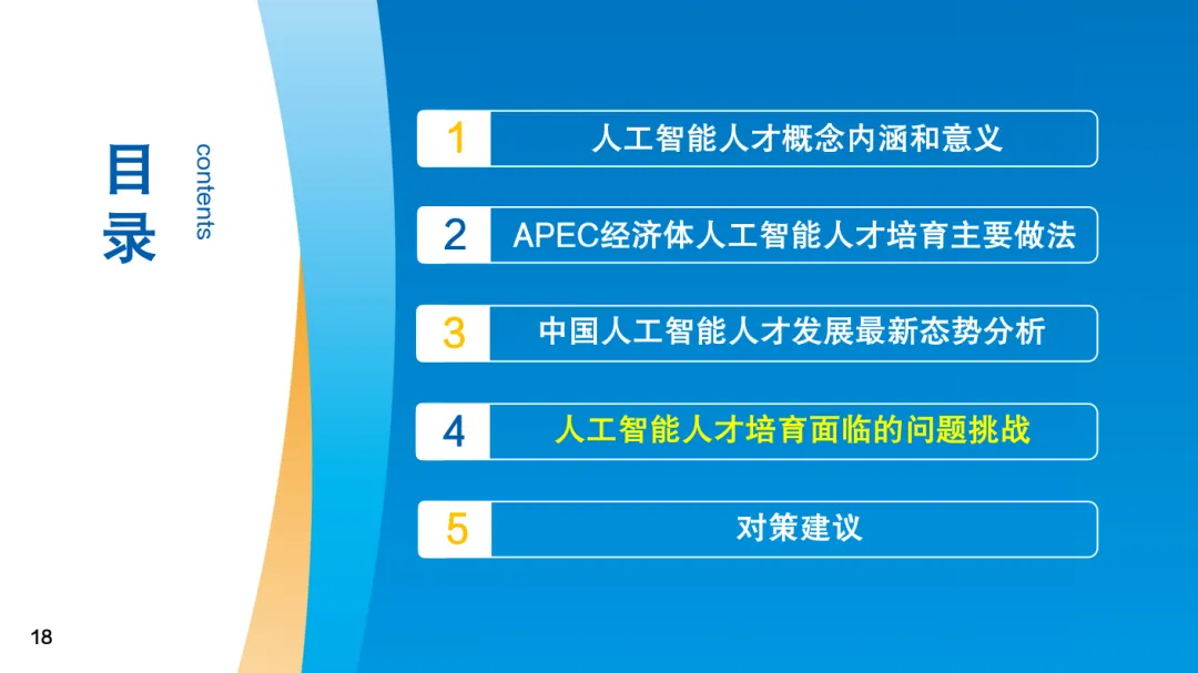 《报告》还指出亚太地区在人工智能人才培育方面面临高端研究型人才稀缺、人才培养资源不足、人才培养滞后技术产业发展步伐、区域发展不均衡等问题,制约我国和亚太其他经济体人工智能发展。针对这些问题,《报告》提出要重视高端人工智能人才培养、完善人工智能人才教育体系、加强产教融合实操人才培养、构建国际人才留引机制、着力提升后发地区人工智能人才培育能力等建议,推进亚太地区人工智能创新发展。