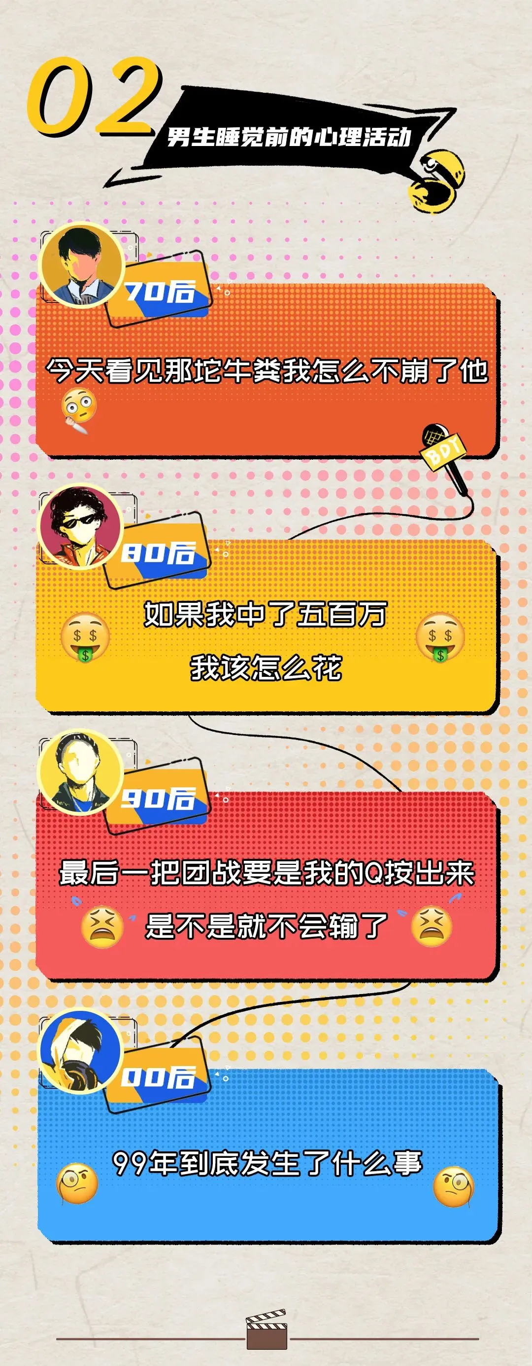 今天我们来看下在不同的情况下,70后、80后、90后、00后会有怎样不同的内心戏。