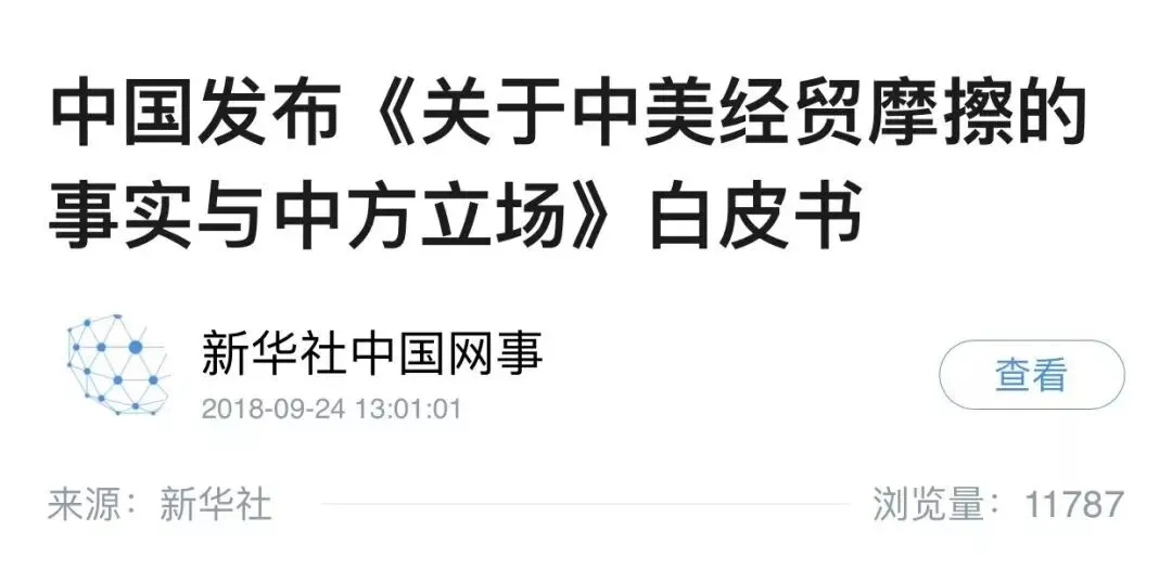 也是这一天下午13时,国务院新闻办公室发布《关于中美经贸摩擦的事实与中方立场》白皮书,旨在“澄清中美经贸关系事实,阐明中国对中美经贸摩擦的政策立场,推动问题合理解决”。