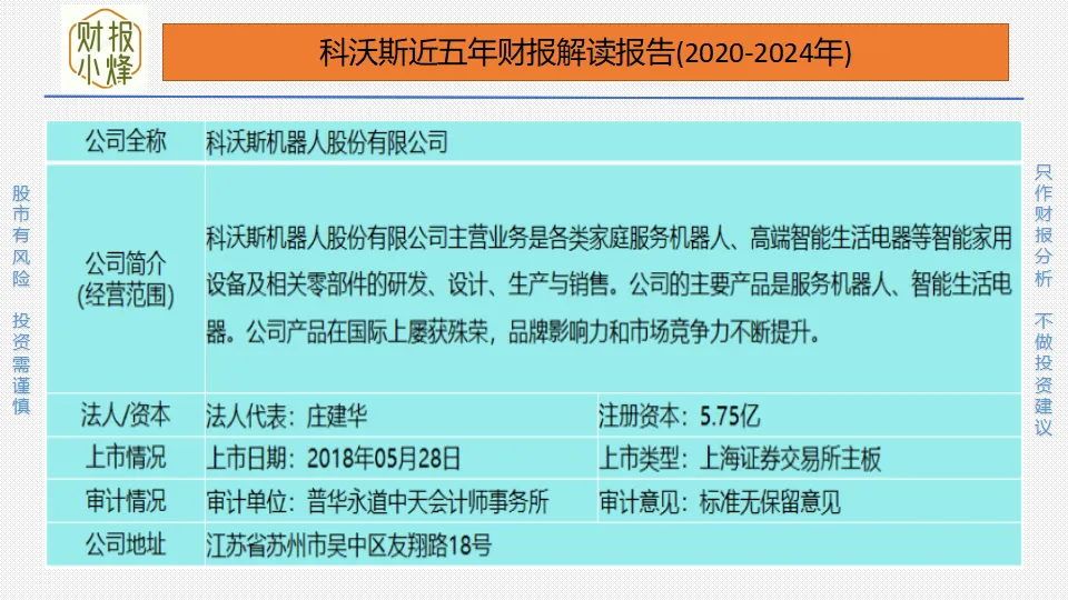 通过上图,我们对科沃斯是做什么的、从事什么行业以及做得怎么样有了大概了解。但这些还不够,想要进一步了解该公司,还需要对其财报进行深入分析。财报小烽只分析审计意见为“标准无保留意见”的上市公司,因为该公司的财报真实性和准确性都比较高,朋友们应该远离不是此意见报告的公司。