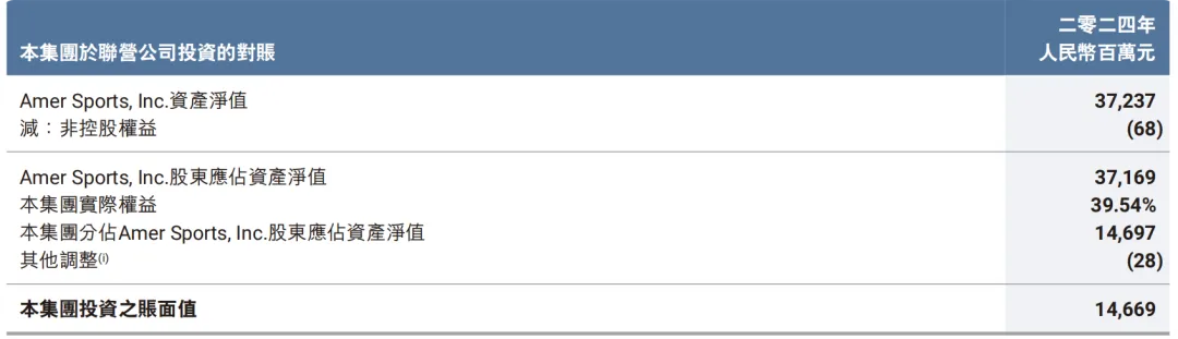 3、联营公司(Amer Sport)