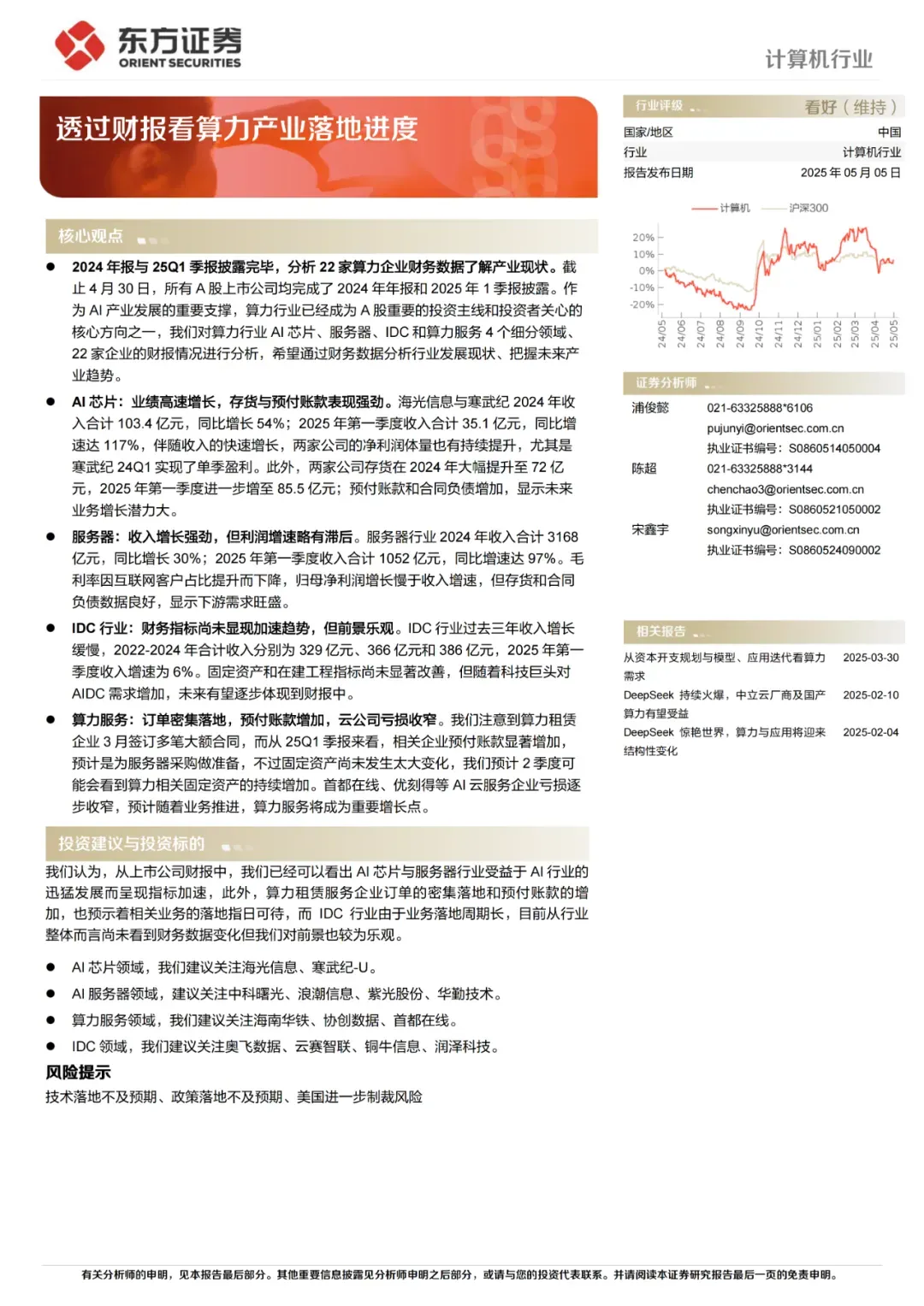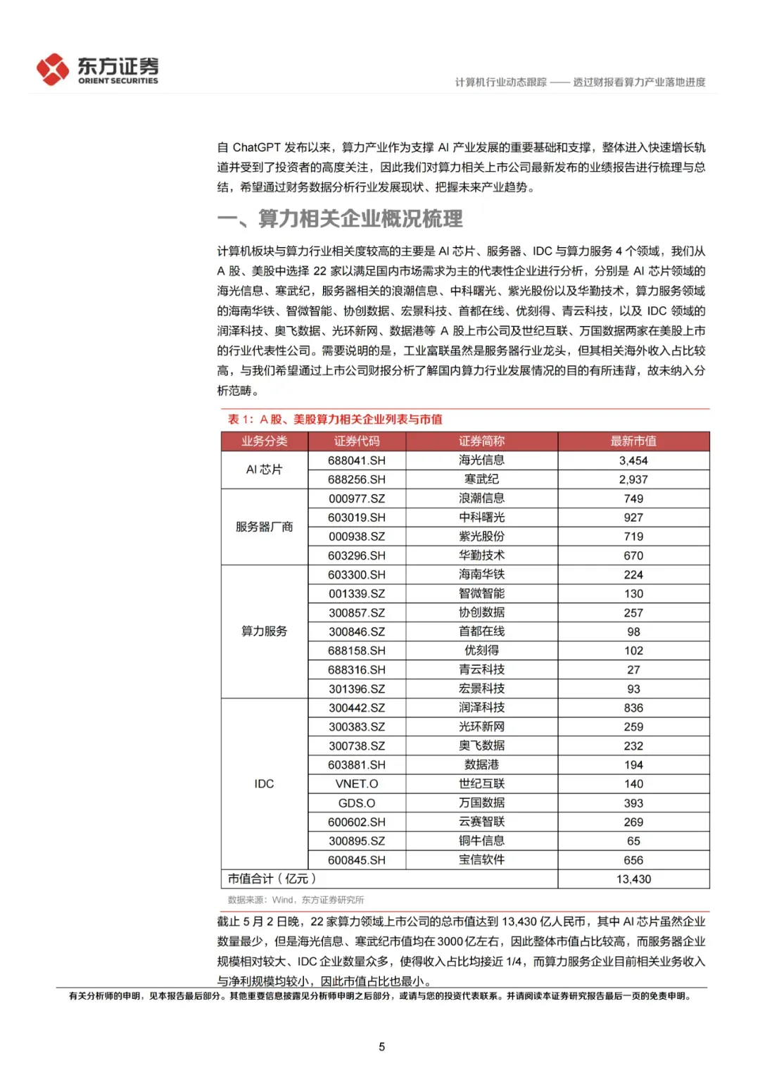 【报告】计算机行业动态跟踪:透过财报看算力产业落地进度(附下载)