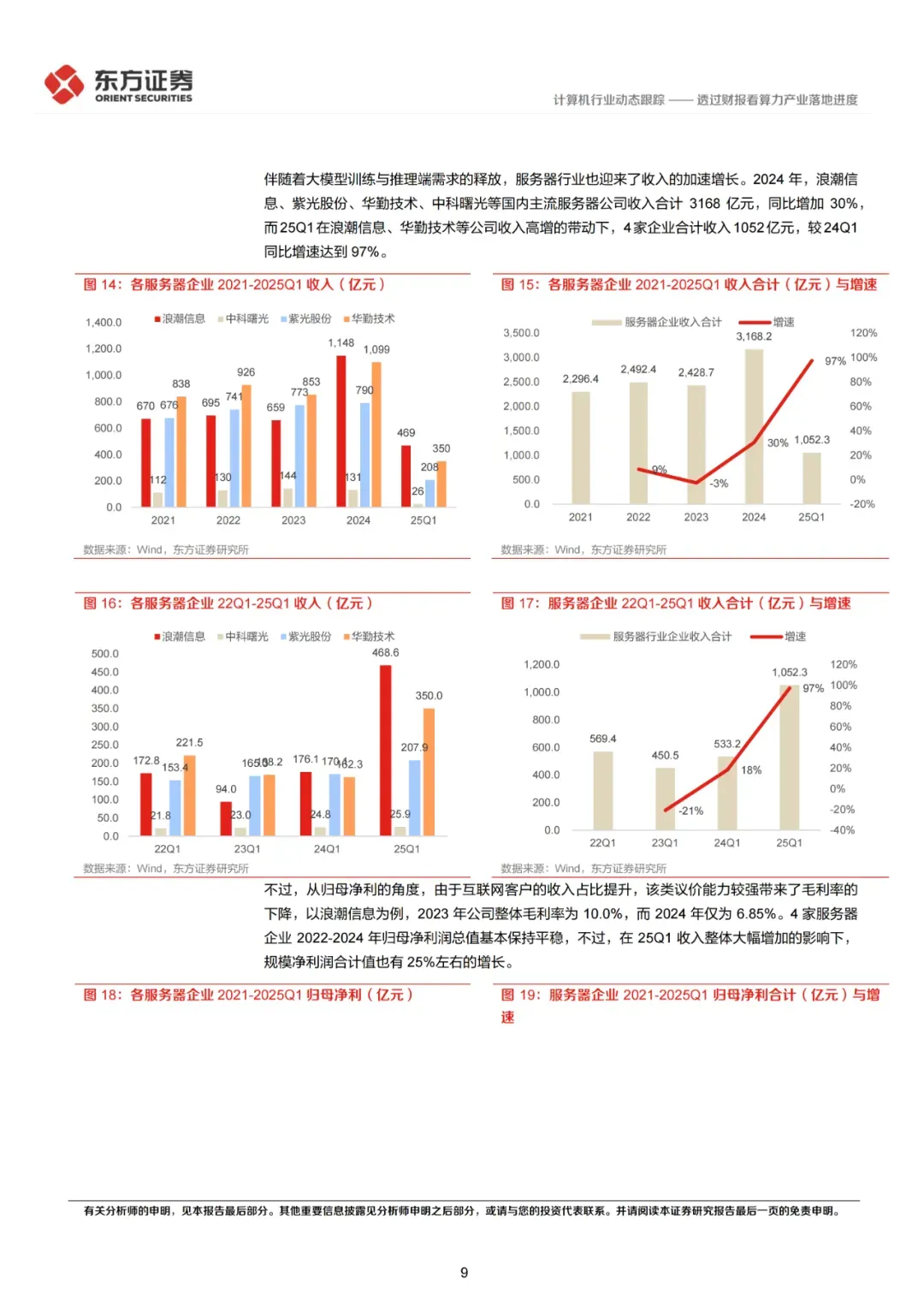 计算机行业动态跟踪:透过财报看算力产业落地进度
