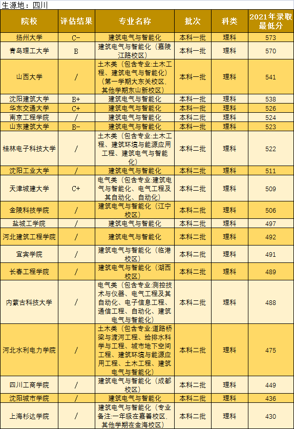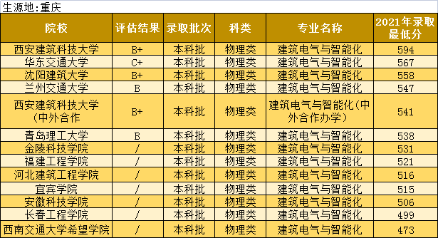 注:根据教育部《普通高校本科招生专业选考科目要求指引》(通用版)最新要求,报考建筑电气与智能化专业必选物理和化学